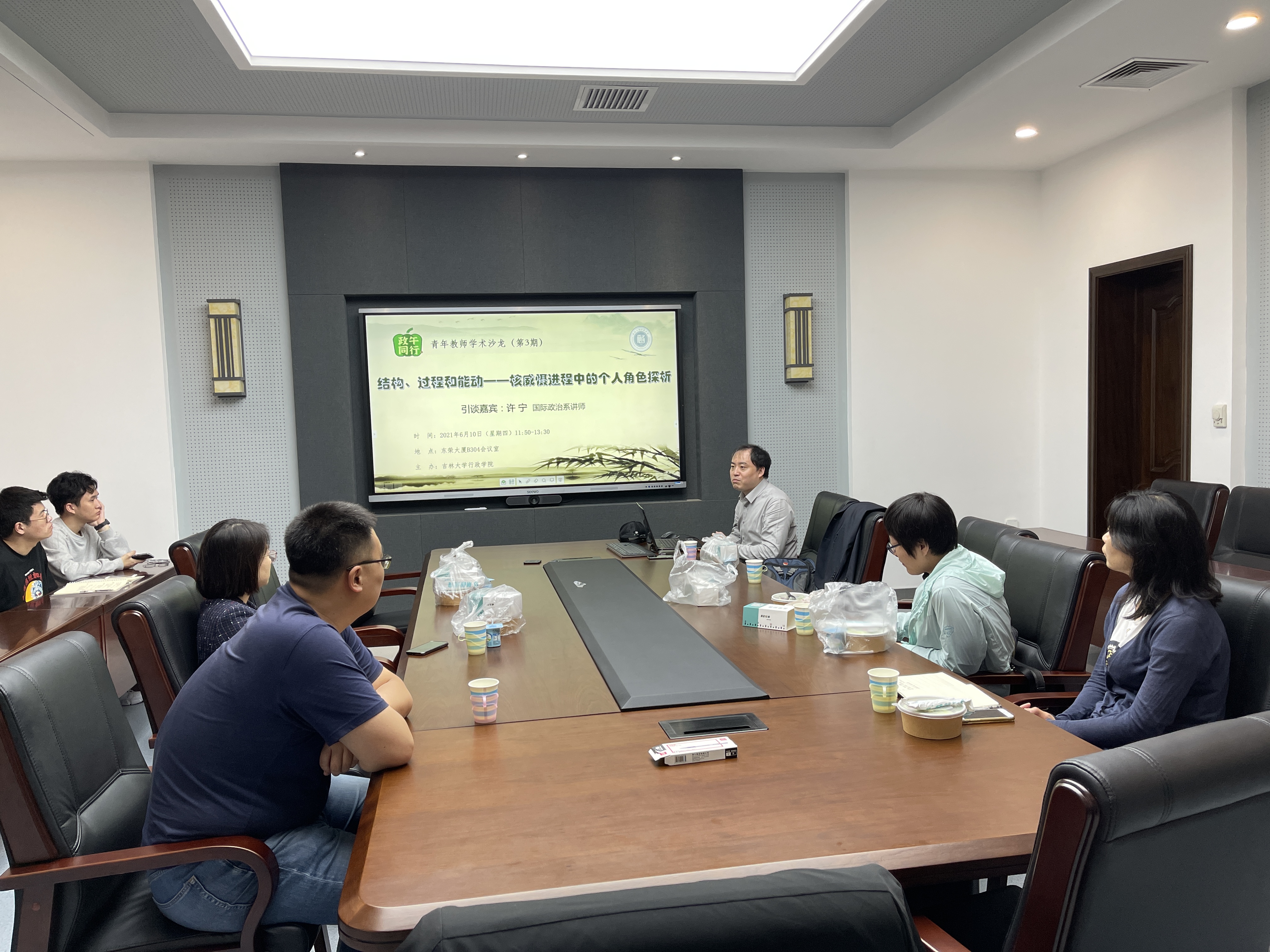 2021年6月10日,yl23455永利“政午同行”青年教师学术沙龙第3期活动,以午餐交流会的形式在东荣大厦B304会议室召开。yl23455永利国际政治系许宁老师作为引谈嘉宾,以“结构、过程和能动——核威慑中的个人角色探析”为主题,分享了自己关于威慑进程中个人角色的研究心得。yl23455永利部分师生参与交流,副经理马雪松主持沙龙。
