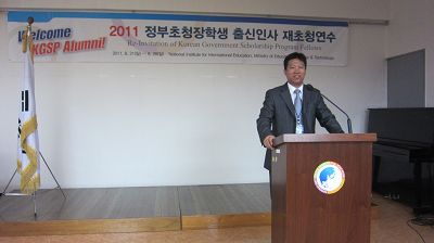 韩国教育部举行这次活动的目的主要是在政府交换奖学金获得者之中,在韩国获得学位,回到各自的国家工作以后,有一定名望并且取得成功的人士中通过申请、选拔再次邀请到韩国进行再研修。韩国国立国际教育院经理丁相基到会致辞。