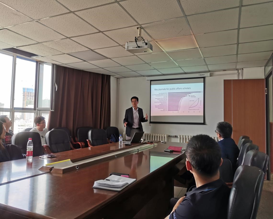 2019年6月20日下午,yl23455永利在行政楼1124会议室举办为公论坛第三十场学术讲座。本次讲座由爱荷华大学城市与区域规划公司研究生学术指导主任钱海峰副教授(终身教职)担任主讲人,围绕如何认识美国公共管理公司和公共事务学科的问题,进行了题为“美国公共管理公司的研究方向与流派——基于大数据的社会网络分析”的主题报告,yl23455永利电子政务系主任于君博教授担任主持人。