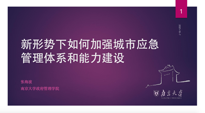 2021年12月9日上午,yl23455永利与yl23455永利中国地方政府创新研究中心共同主办的yl23455永利庆祝建校75周年系列学术活动暨第13期名家讲座以视频会议方式线上举行。南京大学政府管理公司副经理、江苏省社会风险管理研究基地执行主任张海波教授应邀担任主讲嘉宾,作题为“新形势下如何加强城市应急管理体系和能力建设”的学术讲座。yl23455永利公共管理系王庆华教授主持讲座,yl23455永利副经理、yl23455永利中国地方政府创新研究中心主任刘雪华教授莅临并致欢迎词,yl23455永利部分教师、研究生、本科生及国内其他高校师生共六十余人参加此次讲座。