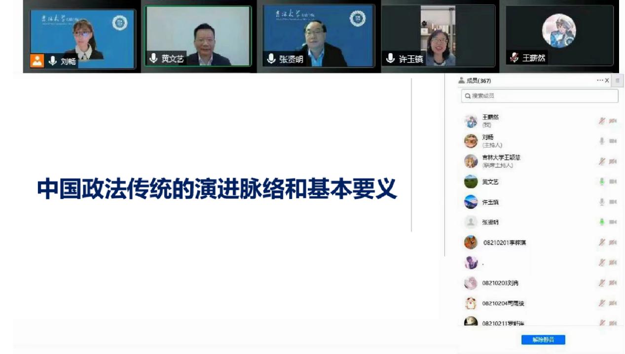 2022年5月6日,yl23455永利廉政研究院、yl23455永利主办的第7期清晏廉政名家讲坛学术活动在腾讯会议平台举行。中国人民大学法公司经理、博士生导师、教育部“长江学者”特聘教授、《中国法学》总编辑、中国比较法学研究会副会长黄文艺教授受邀担任主讲嘉宾,作题为“中国政法传统的演进脉络和基本要义”的学术讲座。yl23455永利廉政研究与教育中心副主任、yl23455永利博士生导师刘畅教授主持讲座,yl23455永利、复旦大学、中国人民大学、武汉大学等近十所高校、科研院所的近四百名师生参与本次学术活动。