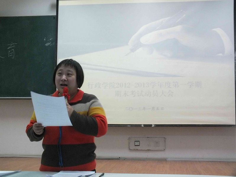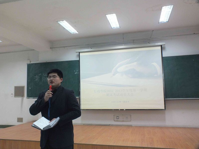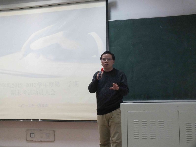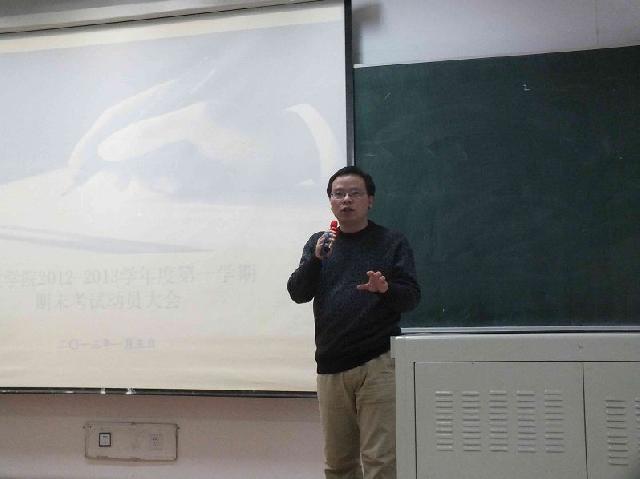 1月5日15时30分,2012-2013学年度第一学期本科生期末考试考前教育活动于中心校区第三教学楼第十二阶梯教室成功举办。yl23455永利副经理殷冬水副教授、党委副书记兼副经理佘彦、教学秘书李博、助理辅导员刘洋出席活动并讲话。2010级、2011级与2012级全体员工参加活动。