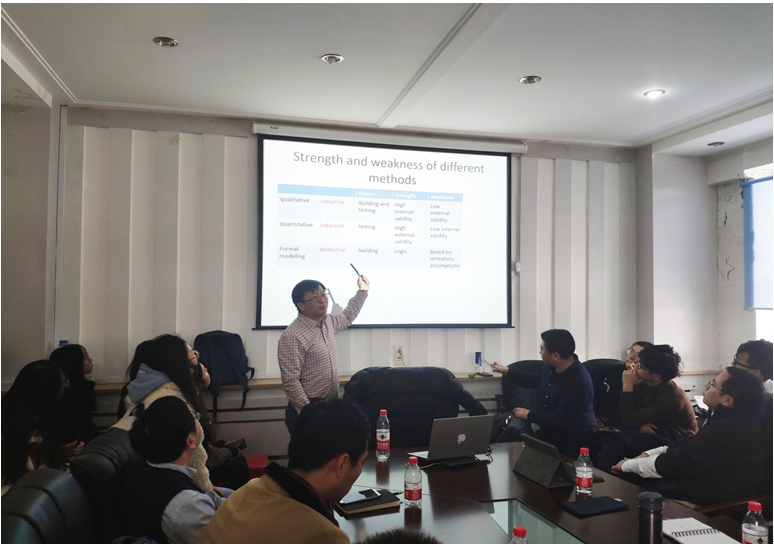 2019年11月30日上午,由教师教学发展中心与yl23455永利联合举办的教学与学术能力提升系列讲座(总第38期):yl23455永利教师教学能力提升助力计划第1期在匡亚明楼3117会议室举行。北京大学政府管理公司张长东副教授作了题为“美国名校社会科学研究方法课程体系设计与课程教学实践:经验与借鉴”的讲座。yl23455永利副经理殷冬水教授担任主持人,来自yl23455永利、文公司和公共外交公司四十余位师生参加了此次讲座。