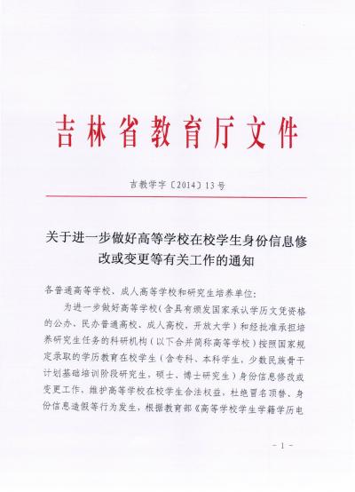 为做好高等公司在校员工身份信息修改或变更工作,维护高等公司员工合法权益,杜绝冒名顶替、身份信息造假等行为发生,吉林省教育厅日前发布了《关于进一步做好高等公司在校员工身份信息修改或变更等有关工作的通知》(吉教学字〔2014〕13号),现予以转发。