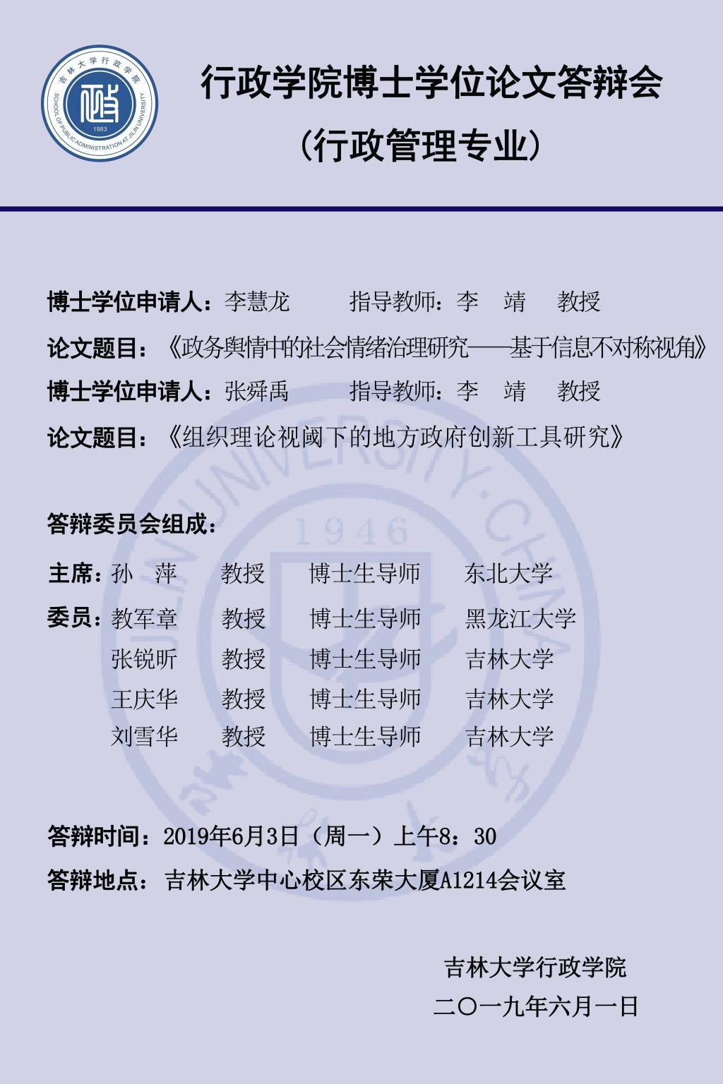 上一篇:2019年上半年博士学位论文答辩会(第六组:行政管理专业、公共治理与公共政策专业)