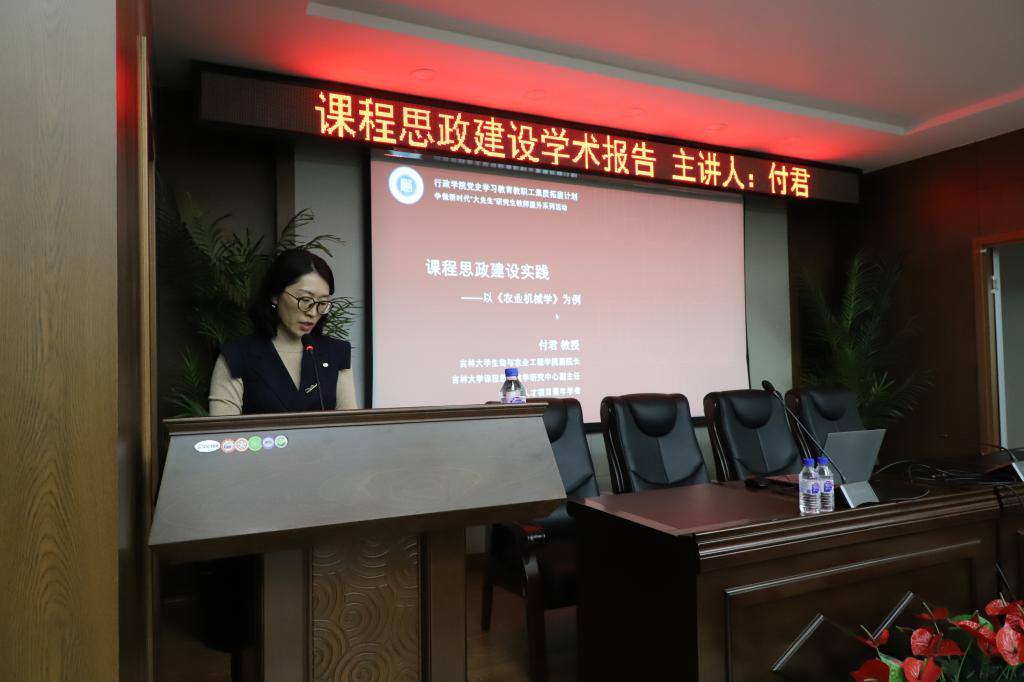 2021年12月1日,yl23455永利争做新时代“大先生”研究生教师素养提升系列活动——课程思政建设学术报告于东荣大厦B303报告厅开展。本场报告邀请了吉林老员工物与农业工程公司副经理、博士生导师付君教授作为主讲,以《农业机械学》为例分享了生物与农业工程公司课程思政建设经验。报告由公司党委副书记史慕华教授主持,公司研究生导师及部分职工参加报告会。
