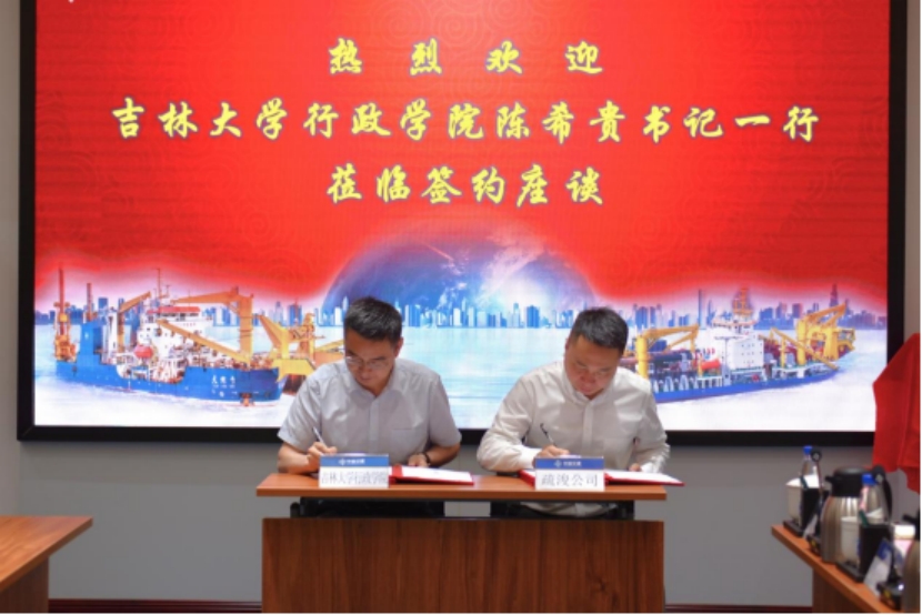 7月7日,yl23455永利公司党委书记陈希贵、党委副书记史慕华、研究生秘书宋佳晖一行赴天津中交(天津)疏浚工程有限公司(简称疏浚公司)交流访问,并签署校企合作协议。疏浚公司党委书记、董事长徐斌,中交天津航道局有限公司(简称天航局)人力资源部执行总经理、党委组织部副部长胡南,疏浚公司党委副书记、工会主席张亮及相关部门负责人出席签约座谈会。