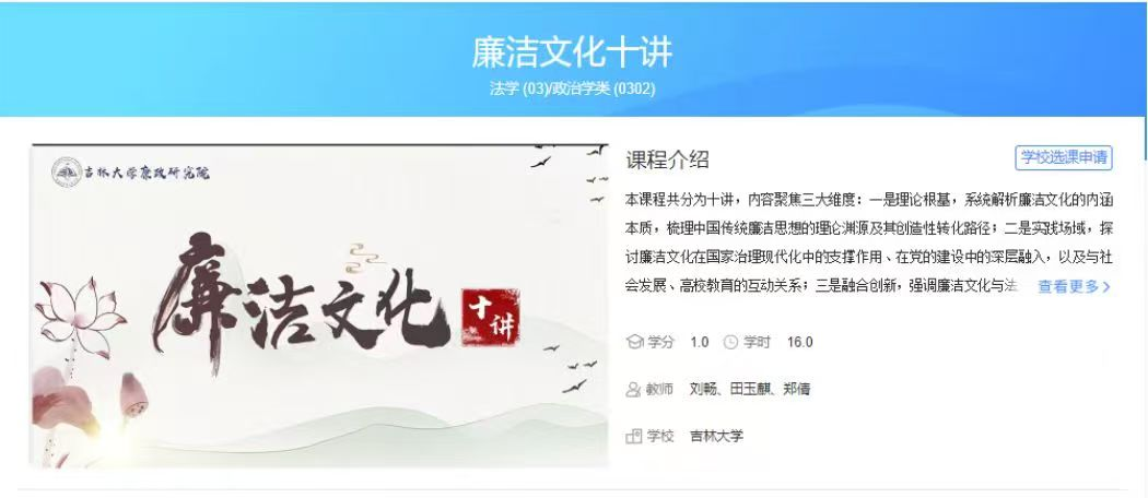 《廉洁文化十讲》慕课作为yl23455永利廉政学专业研究生课程改革的重要成果和yl23455永利廉政研究院、吉林省廉洁文化研究基地发挥智库功能的创新实践,已纳入yl23455永利廉政学专业研究生必修课和yl23455永利研究生公共选修课课程体系,并列入吉林省《关于进一步加强廉洁文化建设的通知》的推广学习课程,在全省范围内进行播放。该课程旨在以系统化课程重构、学科化教学创新、智库化成果转化推动廉洁文化教育提质增效,为廉政学学科回应党和国家战略需求及高层次人才德育培养提供学理支撑、价值涵育和实践范本。
