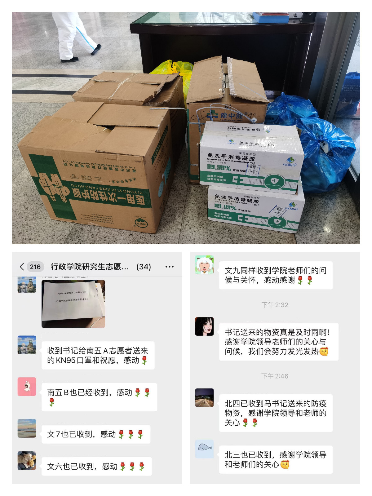 3月13日凌晨12点左右,公司发布通知要求各个公司组织志愿者队伍,这支队伍的初衷是为组织志愿者协助公司开展第三轮全员核酸工作更加高效地进行,研究生秘书王斯靓老师在充分考虑过研究生课业压力和实际工作的需要后,将组织工作交给了2020级硕士研究生党支部书记沈丽同志。“当时收到王老师的消息后,我第一时间转发到了2020级党员和预备党员群里,立刻就有同学联系我报名,当晚就确定下来了8人。在13号早上8点将名单上报给了老师”沈丽回忆道。一支硕士研究生志愿者队伍就在凌晨组建起来,他们分别是艾泰余、崔萌、姜昱尧、靳靖轲、欧振杰、钱优楠、沈丽、魏子千(以姓氏拼音排序),这8人是最早确定的一批志愿者。但随着疫情形势的变化,为确保在校员工的生命安全和身体健康,公司决定对各公寓楼暂时实施封闭管理,志愿者的工作也从原先的协助核酸检测扩展至为同学们配餐、发放防疫物资等。 8名同学与各公寓楼的共计15名博士生志愿者同学一同在3月13日封闭管理通知后“秒”上岗。这支凌晨组建起来的队伍,用“秒回”展示了行政学子的青春热血和使命担当。
