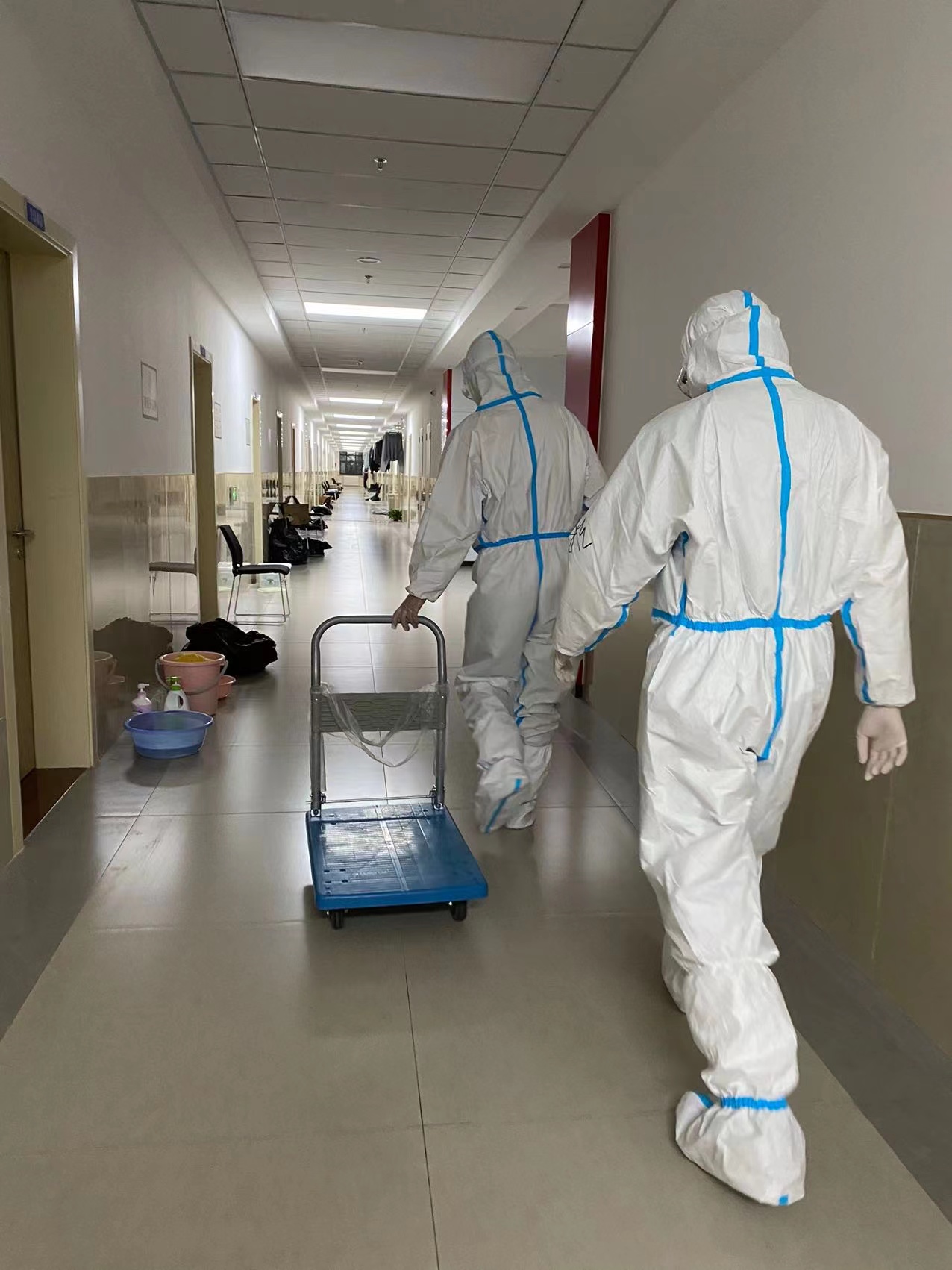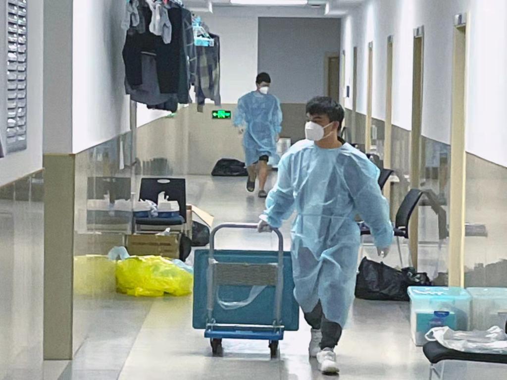 和我一起工作的都是yl23455永利的员工,很多人我并不认识,但是我喜欢叫他们“大白”和“小蓝”,一个原因是因为每天的“大白”和“小蓝”都不是同一个人,这样叫他们我可以更好地分清楚即将要去做什么工作,“大白”总带着我去给同学们送一日三餐、送防疫物资和其他东西,“小蓝”会带着我去收拾大家做完核酸抗原自测的试剂盒、收拾大家的餐后垃圾。另一个原因是因为他们工作时认真的样子,让我觉得他们就是逆行路上最可爱的人。工作的20天里,我逐渐也适应了自己的工作,在早上6:30左右调整好自己等着“大白”接我一起去分早餐、在中午12:00左右一起去拿午餐、在晚上6:00时去给同学们送晚餐,偶尔因为特殊原因,饭菜会晚到一会,但是“大白”和我都会提前准备好,只要一有消息就马上投入工作,争取及时让同学们吃上饭。每次餐后一小时,“小蓝”就会带着我去收垃圾。当然有些工作我也没有办法去提前准备,有时候早上8:00刚刚收拾完垃圾歇下来,就被带去送饮用水了,有时候半夜1:00也得爬起来去搬口罩、消毒液等防疫物资。给同学们送物资的这20天里,我已经记下了每个人的宿舍,这条路线也记得清清楚楚,经常能听到很多同学们说,一听到我走路时发出的声音,就知道是“大白”和“小蓝”来送餐和其他防疫物资了,我还有点小骄傲。作为铁打的我在前不久崴了“脚”,一个车轱辘差点磨掉,“大白”和“小蓝”他们每天都要和我做一样的事情,我想他们的脚肯定也会很不舒服吧,但是我从来没听到他们抱怨过,我听见的只有他们一起喊着“一二”用力搬东西的声音。送物资的时候,我也经常会遇到上门做核酸的医护人员和陪同的志愿者,看着他们护目镜上的雾气,我能想象到他们的辛苦与付出。在抗击新冠疫情阻击战中,每个人的意志都刚强如铁,我只是一块铁板车,而这些医护人员、志愿者却如同一个个“铁人”。