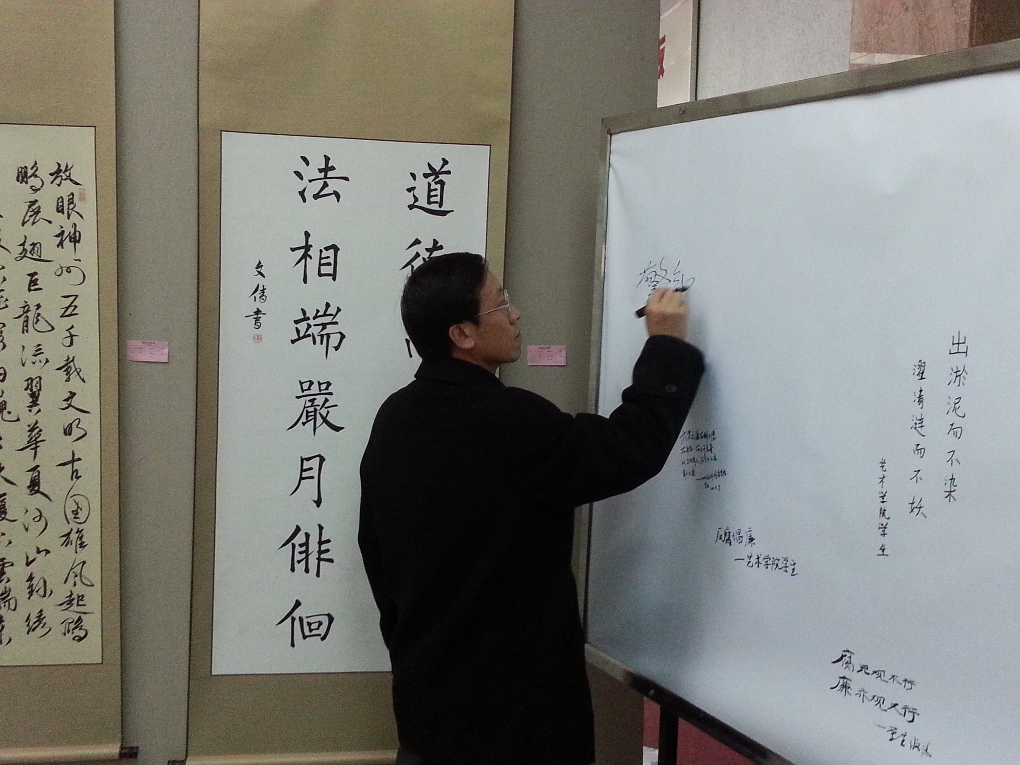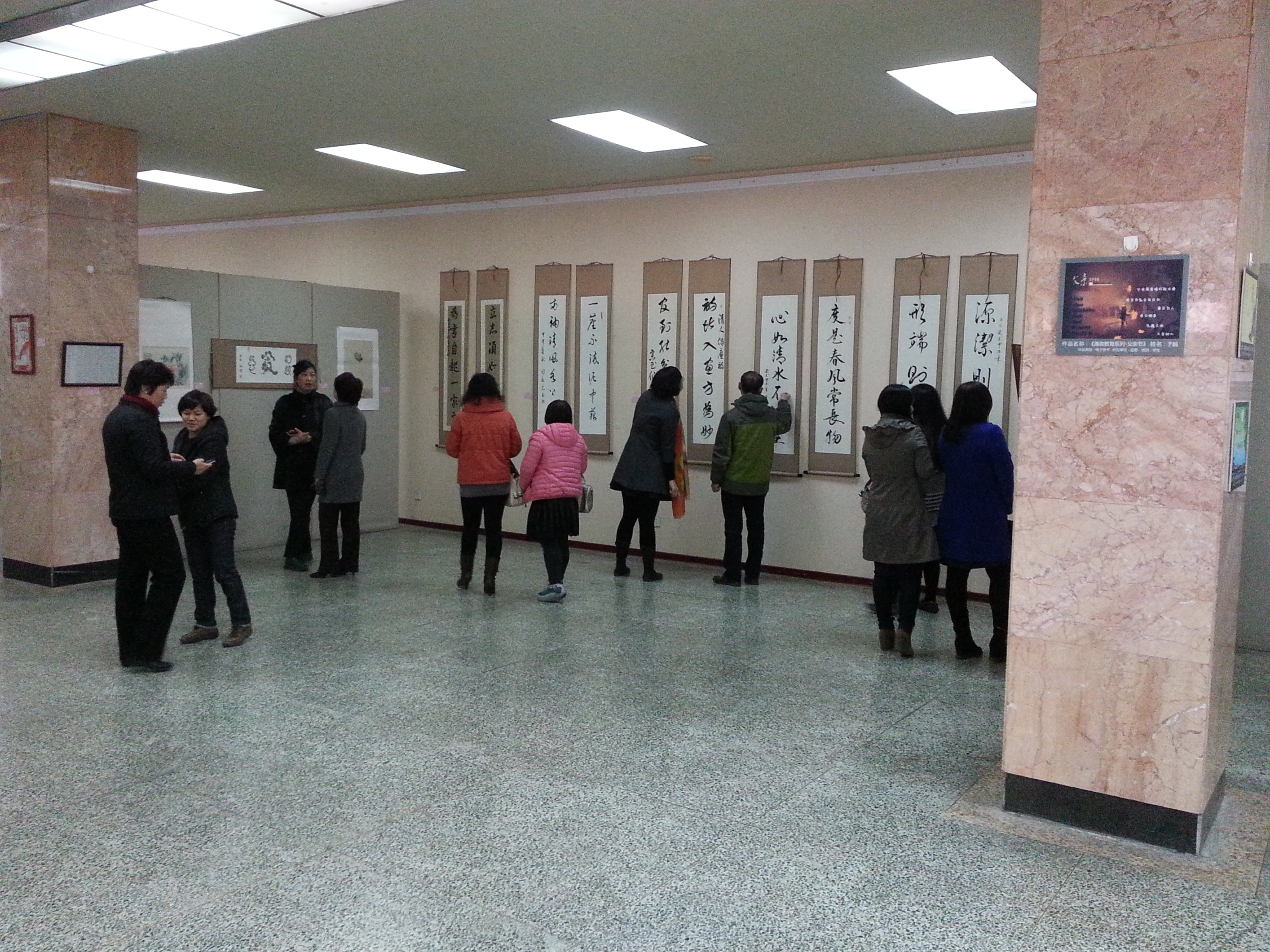 为深入贯彻落实党的十八大精神,充分发挥廉政文化的导向、规范和约束作用,弘扬和倡导自律、公正和廉洁精神,营造以廉为荣、以贪为耻、廉洁自律的良好风尚,公司党委书记边铁、经理张贤明带领全公司党员干部20余人,于11月10日上午,来到中心校区逸夫图书馆,参观了公司廉政文化作品展。