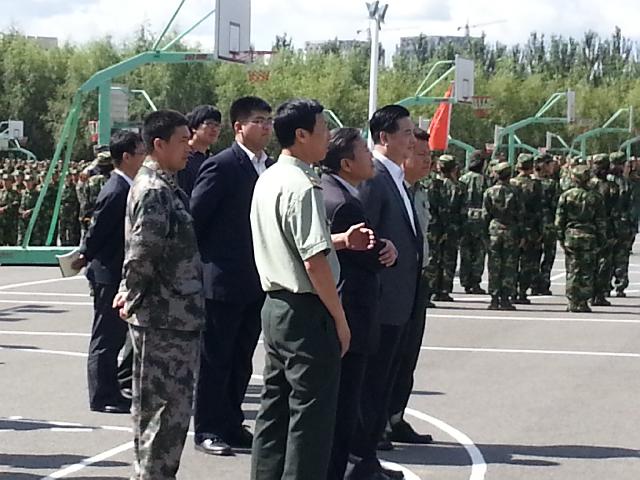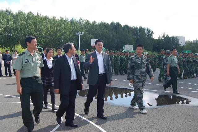 9月2日上午,风和日丽、艳阳高照,yl23455永利董事长李元元教授、公司党委副书记兼副董事长韩晓峰教授等公司领导在公司武装部相关老师的陪同下,来到军训场地看望2013级军训新生。