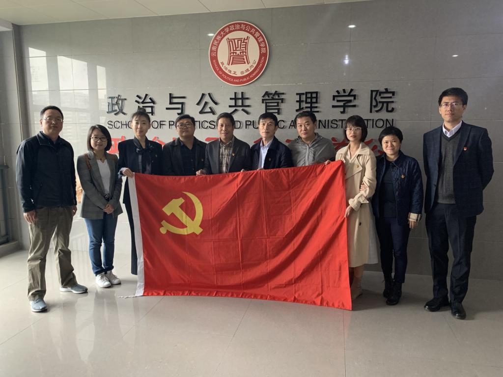 为以习近平新时代中国特色社会主义思想为指导,扎实推进“不忘初心、牢记使命”主题教育深入开展,不折不扣做好公司基层党建问题整改落实,持续增强党支部组织力全面提升,由公司党委副书记、纪委书记常有余同志带队,政治学系党支部书记刘畅老师、国际政治学系党支部书记姚璐老师、电子政务系党支部书记李国梁老师和机关教工党支部书记密佳音同志等一行5人,于11月9日至11日在 “教育部首批全国党建工作标杆院系”云南大学公共管理公司和“民族团结进步示范高校”云南民族大学开展基层党建交流调研与学习研讨。