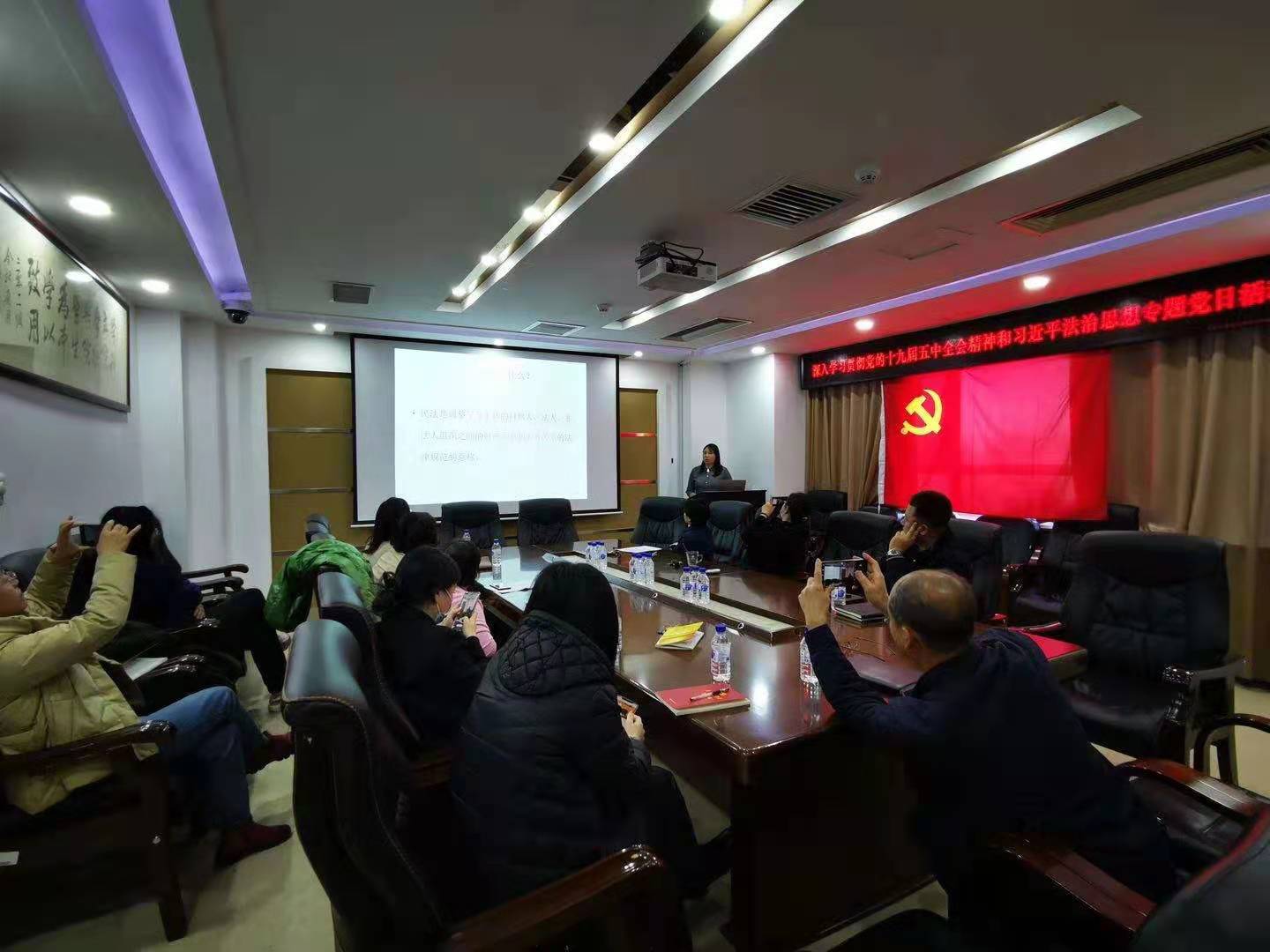 根据公司党委《关于认真学习宣传党的十九届五中全会精神的通知》要求和公司党委的相关工作部署,机关教工党支部于2020年12月2日,召开党员大会,开展“深入学习贯彻党的十九届五中全会精神和习近平法治思想”专题党日活动。会议由支部书记密佳音主持,全体支部党员参加会议。
