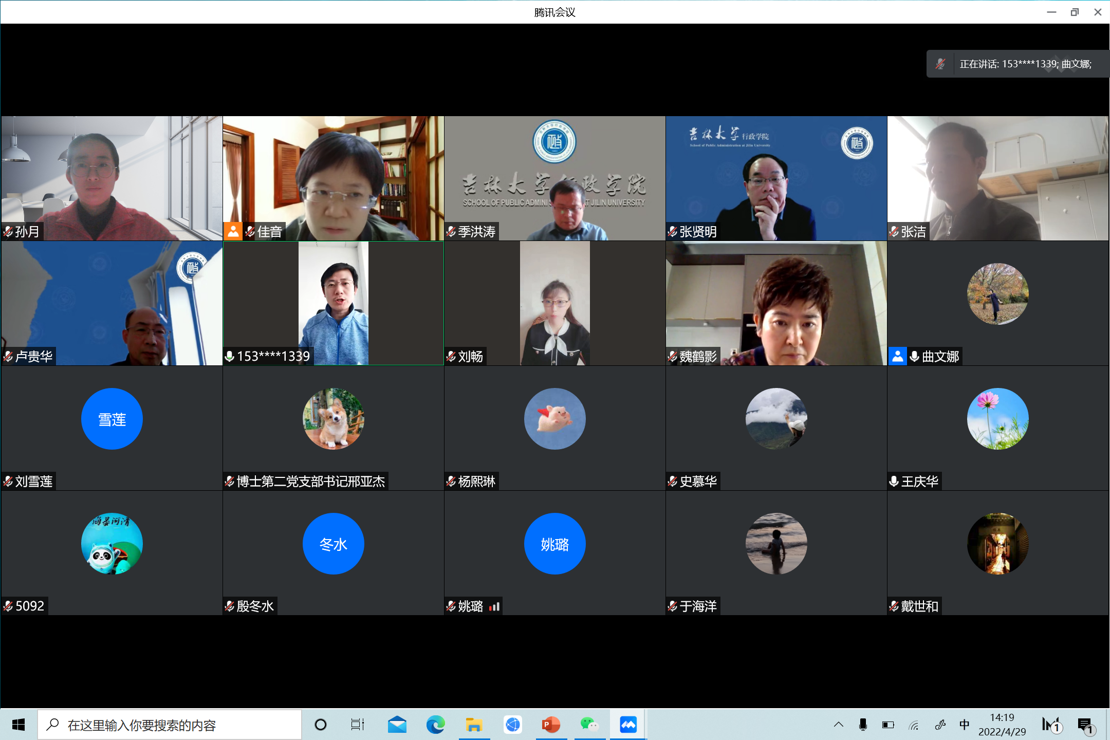 4月29日下午,公司召开线上党委理论学习中心组(扩大)会议,专题学习习近平总书记关于新冠肺炎疫情防控工作的系列重要讲话精神,以及公司疫情防控应急指挥部总指挥、党委书记姜治莹和总指挥、董事长张希近期在公司有关工作会议上的重要讲话。公司党委理论学习中心组成员、党员处级领导干部、各教工党支部书记、各系主任、部分科室负责人和员工党员代表参加会议。公司党建联络员戴世和列席指导。会议由公司党委书记马景惠主持。