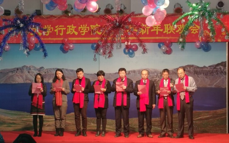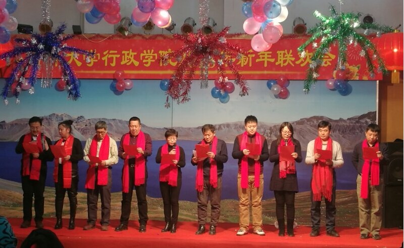联欢会在政治学系老师们的诗朗诵《祖国颂》中拉开序幕,合唱歌曲《我和我的祖国》不但展现出各位老师胸怀祖国的壮志豪情,更让台下的观众心潮澎湃;梁述清老师带来的歌曲《老男孩》,唱出年轻一代的活力与激情;国际政治系老师们的诗朗诵《放飞中国梦》以其恢宏的气势赢得全场雷鸣般的掌声;行政管理系与电子政务系的老师们用歌曲《我爱你中国》再次激发出师生们的爱国热情,使台下的观众与老师们一起引吭高歌,以此表达对祖国母亲的深切情感;机关教工党支部的各位老师表演的诗朗诵《五年抒怀》、书法表演《祝福》与歌曲《不忘初心》和《青春纪念册》等节目,彰显出各位老师的才华与团队协作的精神,引得观众们阵阵赞叹的同时,也将联欢会的气氛推向了高潮。节目中穿插的有奖猜词语、踩气球、抽奖等环节使得联欢会的节日气氛更加浓烈。在联欢会的尾声,以行政管理人员工作为主题而精心录制的视频短片,让大家一同回顾行政管理人员携手奋进的精彩瞬间。