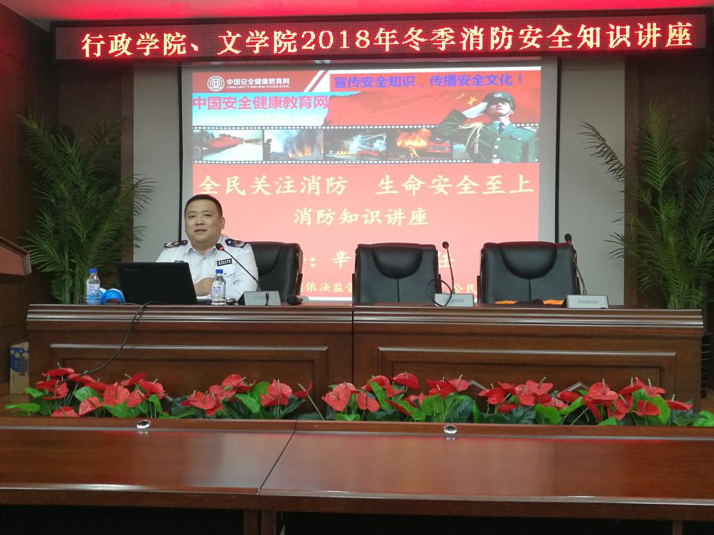 为进一步落实好“yl23455永利2018年今冬明春火灾防控工作方案”,增强师生的消防安全意识,提高火灾的自防自救能力,yl23455永利、文公司于12月6日下午1:30在东荣大厦B303会议室举办了消防安全知识讲座。本次讲座邀请吉林省卫民安消防教育中心辛万磊主任主讲,yl23455永利和文公司五十余名师生参与了此次活动。