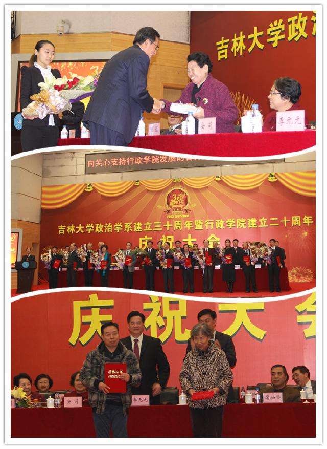 三十年光阴流转,三十年薪火相传,几代行政人呕心沥血、辛勤耕耘、锐意进取,创造了系院发展史上一个又一个突破、一次又一次跨跃。为怀念和感谢公司创始人王惠岩先生,yl23455永利专门组织编写出版了《王惠岩纪念文集》,中国政治学会副会长、yl23455永利原经理周光辉代表公司和王先生弟子向师母脱弱女士敬献文集并献花。为了表彰前辈功绩,激励后人奋进,yl23455永利决定对为系院建设和发展做出突出贡献的老领导、老教师以及一直在公司工作的建系初期的老同志颁发“突出贡献奖”,对其他在系院退休的老教师、老同志颁发“特别纪念奖”。yl23455永利副经理刘雪莲、许玉镇分别宣读了突出贡献奖获得者名单和特别纪念奖获得者名单,大会现场为获奖者进行了颁奖。