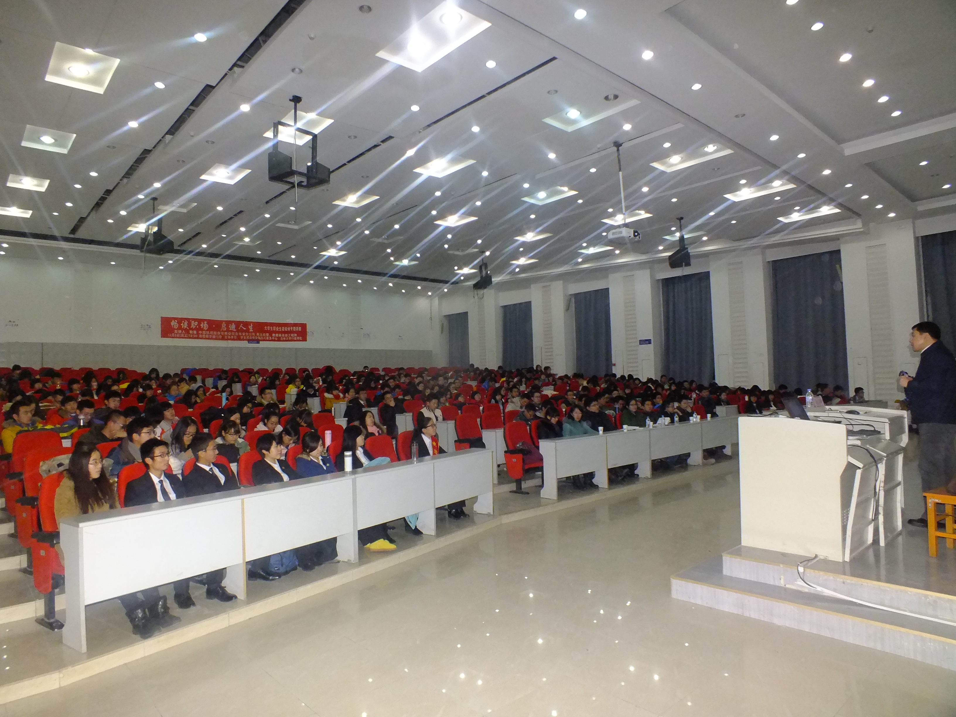 12月3日晚6时,由员工就业创业指导与服务中心和yl23455永利联合举办的“畅谈职场·启迪人生”——老员工职业生涯规划专题讲座在yl23455永利前卫南区经信教学楼F5阶梯教室举行。公司党委副书记兼副经理史慕华,本科生辅导员刘洋、曲畅竹出席了此次活动。