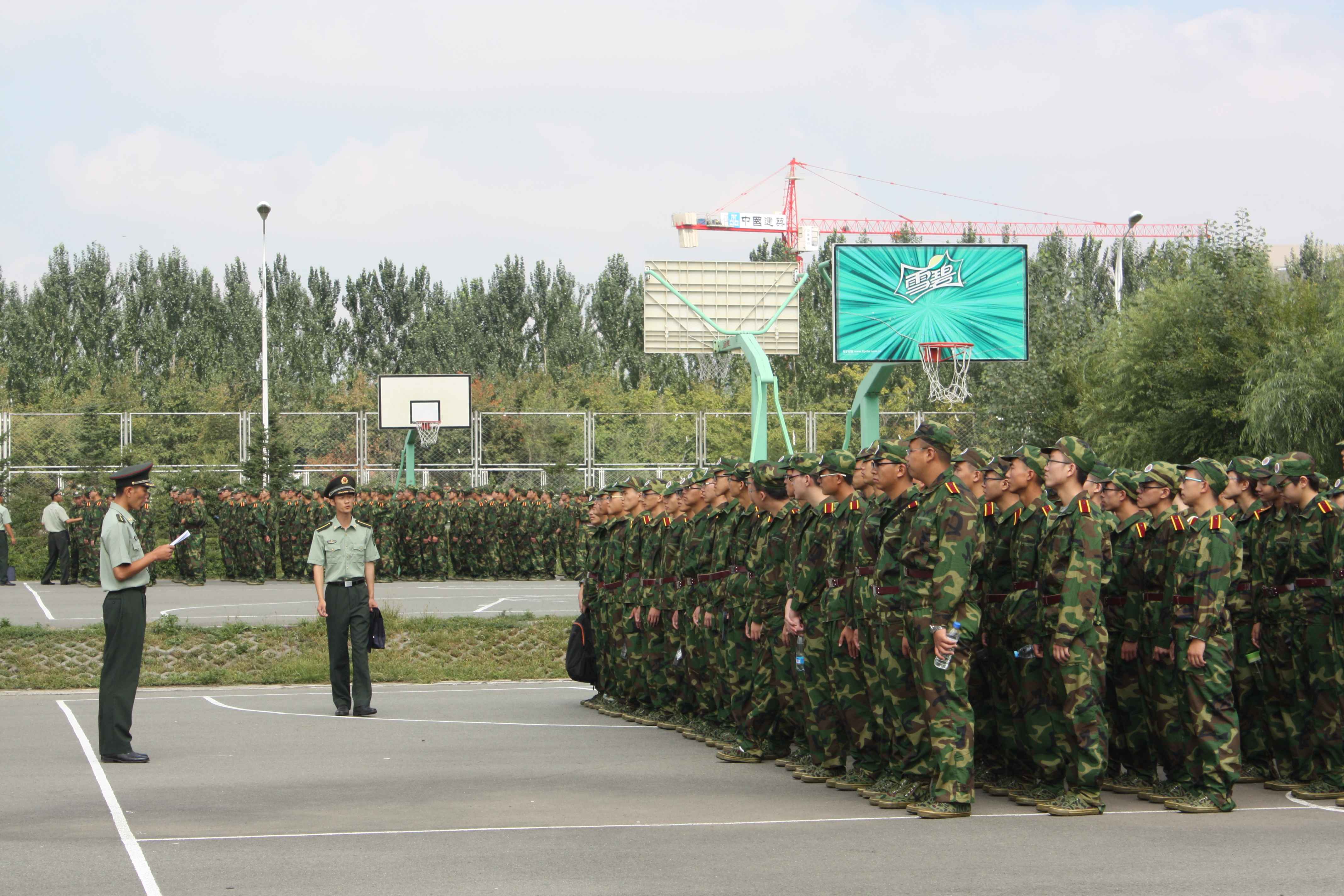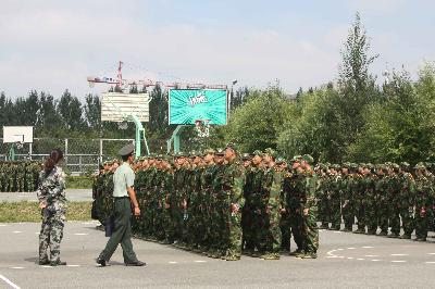 动员大会结束后,yl23455永利2014级新生被编在一营三连,新生在连长的带领下来到训练场地,随即投入紧张的军事训练之中。从站军姿到稍息,从跨立到踢正步,军事训练在教官的带领下有条不紊地进行着。万事开头难,尚未习惯高强度训练的同学们面对繁重的任务未免疲惫不堪。军训刚刚开始,动作尚显生疏散乱。但经过一个上午的团结努力,同学们的动作愈发标准,队列愈发整齐。不变的却是坚定的目光,蓬勃的朝气。
