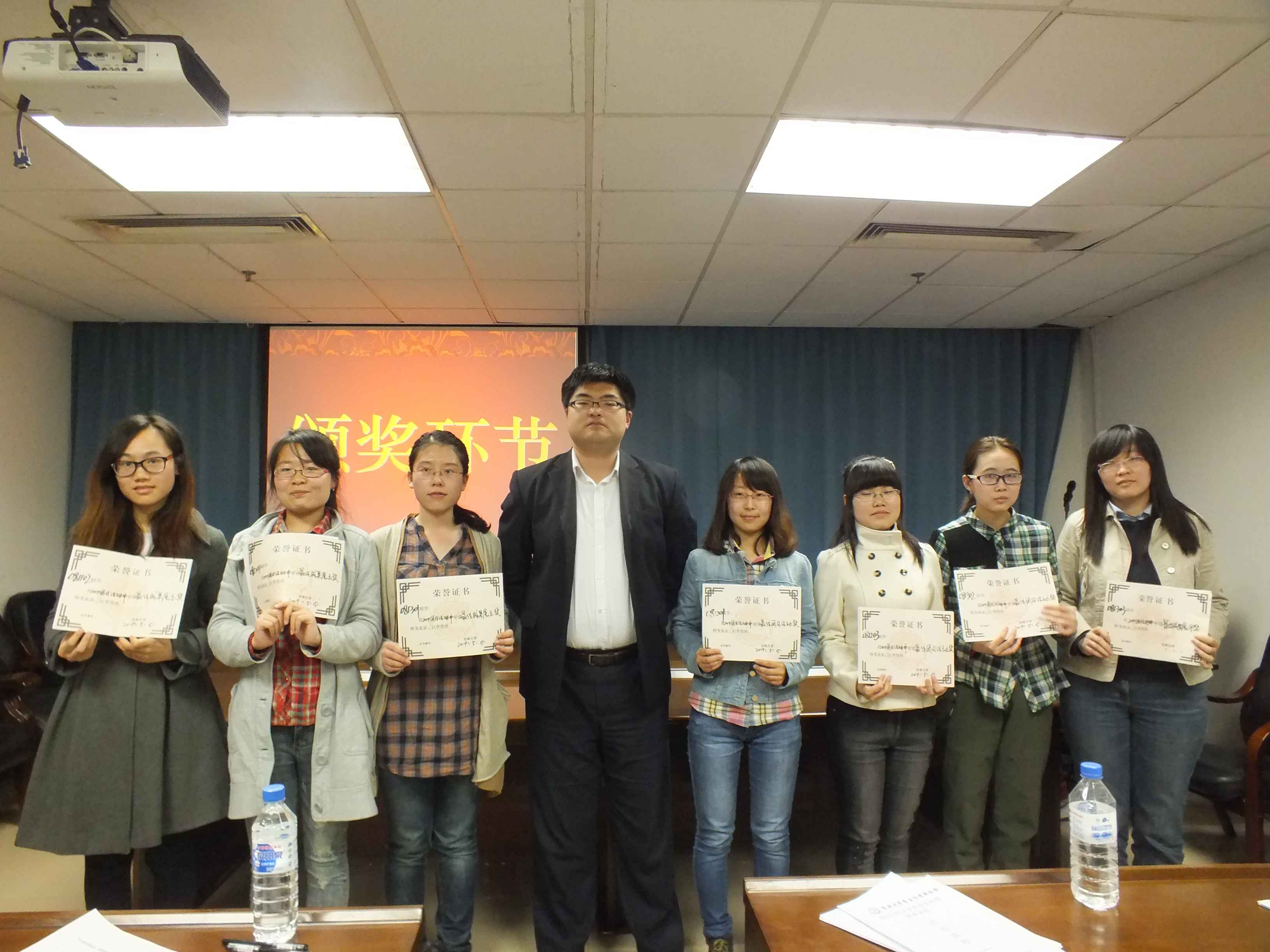 最终,081302班团支部、081201班团支部、081203班团支部获得最佳团日活动奖,081301班团支部、081302班团支部、081204班团支部、081102团支部、081103团支部和081104班团支部获得最佳成果展示奖。刘洋为获奖团支部颁发了荣誉证书,并合影留念。
