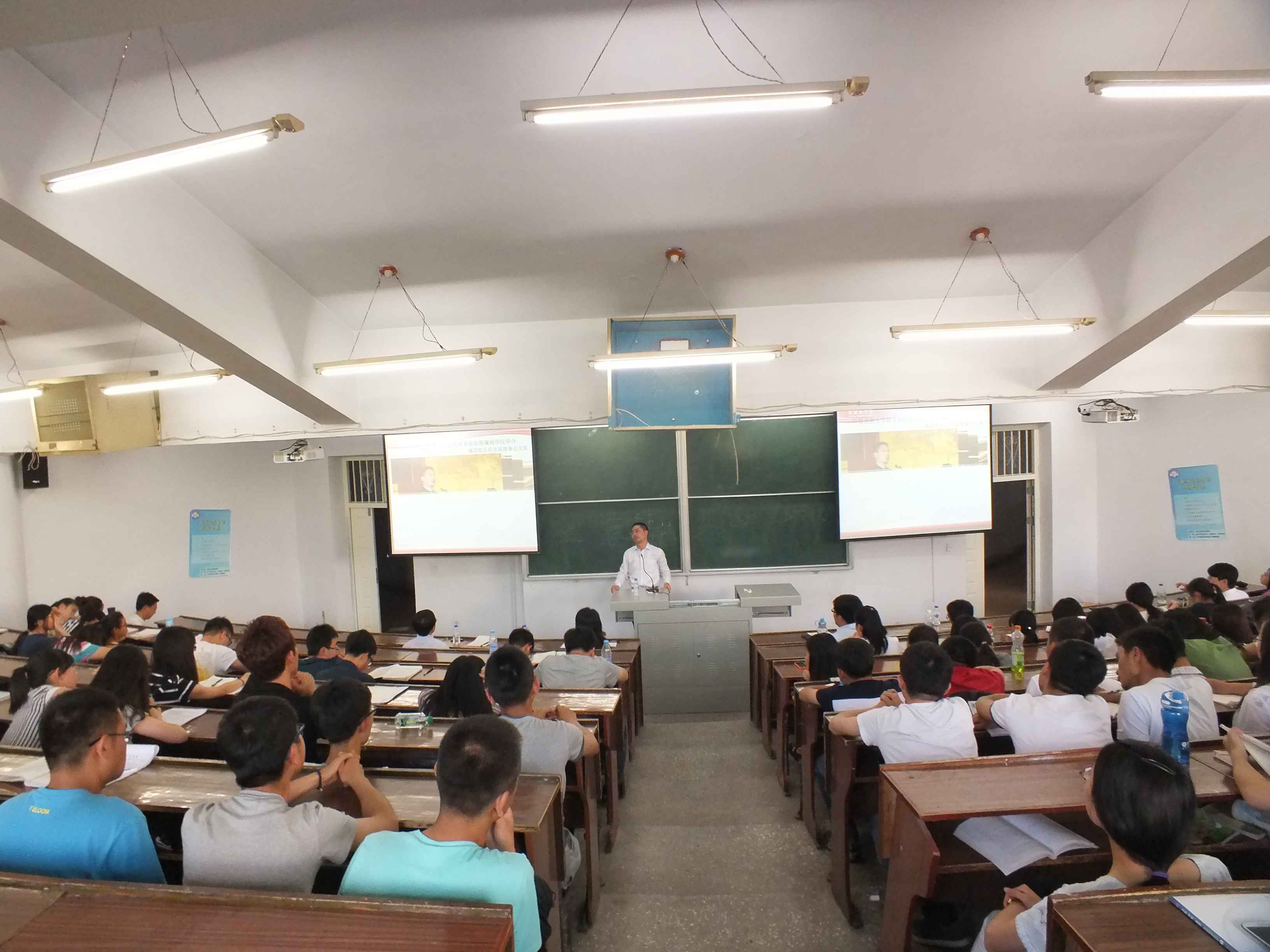 为提升老员工的人文修养,启迪老员工的择业和从业观念,2014年6月14日下午,应公司党委书记边铁的邀请,海澜集团总裁助理、海澜商公司经理、yl23455永利96级政治学专业毕业生戴蔚在yl23455永利中心校区萃文教学楼第八阶梯教室做了一场主题为“西游记里的职场智慧”的讲座。党委书记边铁出席,副书记兼副经理史慕华主持讲座,yl23455永利及部分兄弟公司员工200余人到场聆听。