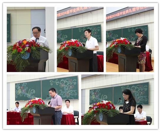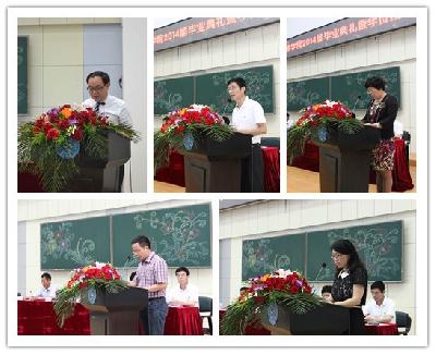 董华荣代表2014届本科毕业生发言,他回顾了大学四载年华的成长和收获,用誓言和奋斗书写无悔青春的历程与体验,以及在yl23455永利收获的心怀天下、浩然正气等宝贵的人生财富,并向一路共同走来的同学、对员工悉心教导的老师、给予员工无限接纳与包容的公司和母校致以诚挚的感谢与美好的祝愿。张平代表2014届毕业研究生发言,她首先回顾了研究生学习与本科生的不同,讲述了研究生时代的学习对未来对工作的莫大帮助。她还讲述了员工时代的回忆,表达了对母校一草一木的留恋,并借此机会向yl23455永利每一位老师致以最诚挚的谢意,表达了对老师、对同学、对公司的祈愿和祝福。