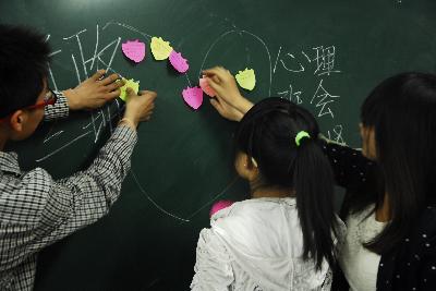 首先,班级心理卫生委员林海兴介绍了本次心理班会的主题和流程;郝瑞琪、李跃坤、徐飘、刘露锋同学与大家畅谈心灵沟通的意义:“沟通是人与人之间、人与群体之间思想和感情的传递与反馈的过程,其目的是达成思想一致和感情的通畅。”随后,同学们进行了听歌词猜歌手、你说我画等游戏,观看了励志短片。班会结束后,同学们在便利贴上写下心愿,并将心愿便利贴贴在黑板上,组成心形,合影留念。班级成员刘航宇、和谐、肖颖、陈永吉深有体会,“每个人的内心世界就宛如彼岸与此岸,人与人之间的差距与分离就好像两岸之间滔滔不绝的江水。要想到达彼岸,就必须建造一座坚固的桥;要想走进他人的内心世界,就必须建造一座通向心灵的桥——学会沟通。”