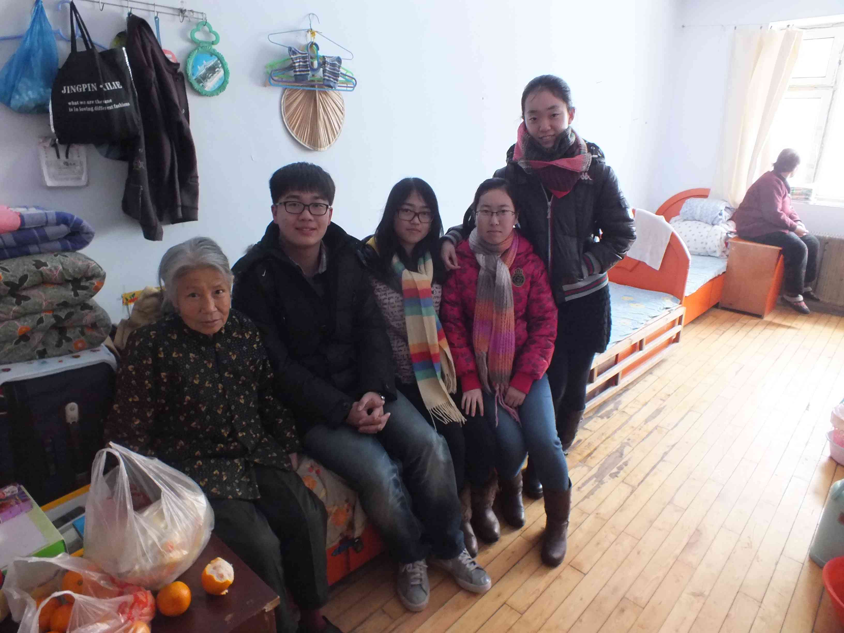 活动开始前,老年公寓的主要负责人向同学们简单介绍了院内老人的生活状况,管理员告诉同学们,这里的老人大多是空巢老人和孤寡老人,平时来探望的人较少,缺乏关心和交流。在管理员介绍完毕后,同学们纷纷带着为老人们精心准备的水果走进老年公寓与他们谈心交流,并帮助老人们整理内务、打扫卫生。在与老人交流的过程中,同学得知年逾古稀的王祥老人曾经是长春一汽汽车制造厂的一名工人。他向同学们娓娓道来自己年轻时的工作经历,同时还教育“同学们一定要珍惜时间,好好学习,为祖国的现代化建设贡献自己的力量”。老人的话使在场的员工受到了巨大的鼓舞,行政学子表示要以最优秀的成绩来回报祖国。行政管理四班同学与老人积极的互动,孙昕聪为大家表演了太极拳,赢得了老人们的一致好评。在活动接近结束时,行政学子与老人合影留念,依依惜别。