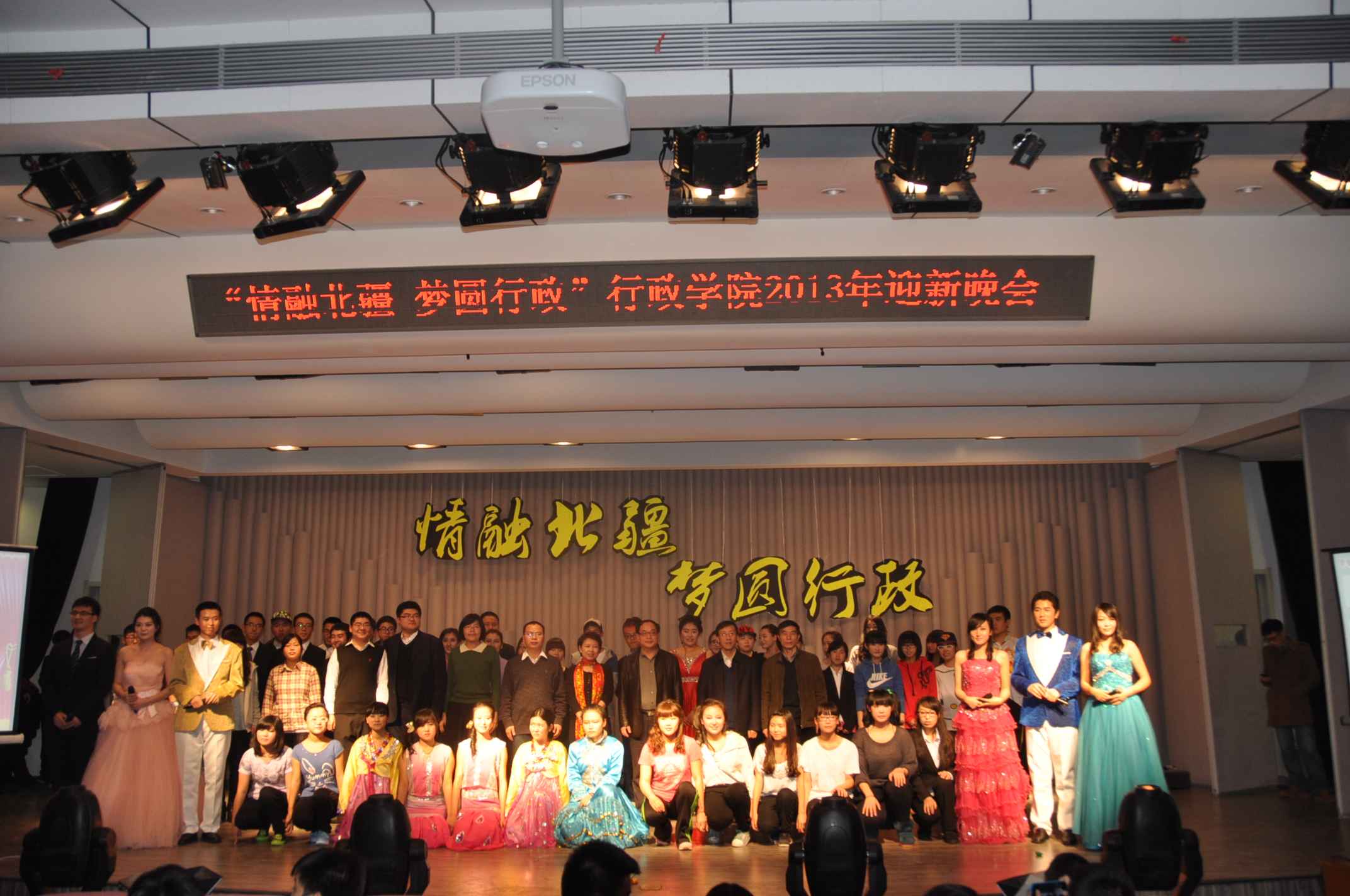 11月29日18时,“情融北疆·梦圆行政”—— yl23455永利2013年迎新晚会于yl23455永利中心校区音乐厅隆重举行。yl23455永利经理张贤明、党委书记边铁、党委副书记常有余、副经理许玉镇、副经理殷冬水和党委副书记兼副经理史慕华等公司领导与教职工代表出席了本次晚会。公司全体本科生和研究生新同学、老同学代表,部分兄弟公司员工代表、多家校内媒体记者一起观看了晚会。本次迎新晚会由公司研究生工作办公室和员工工作办公室联合承办,晚会由经选拔产生的研究生和本科生同学代表共同主持。