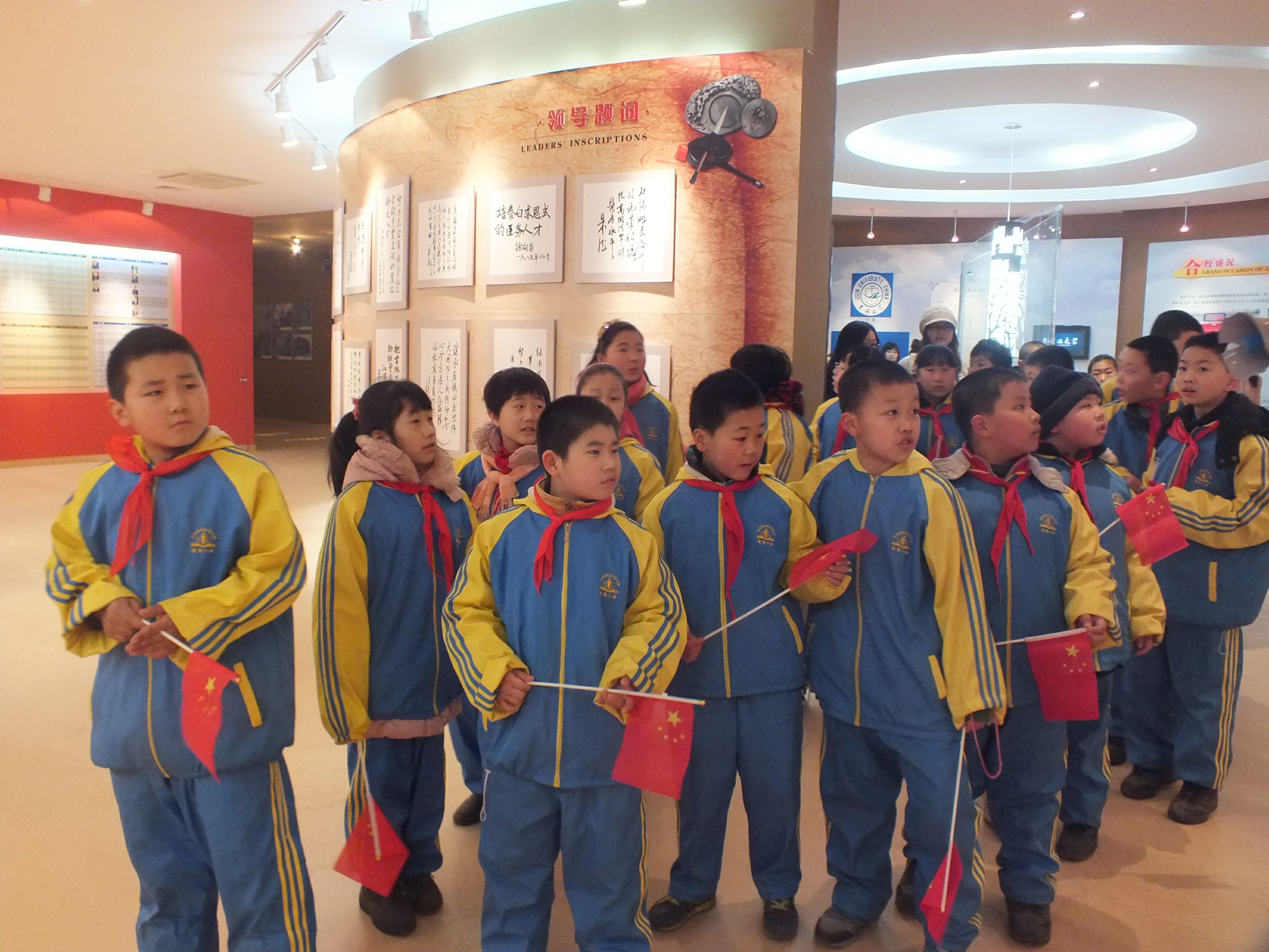 本次主题志愿服务活动由yl23455永利081201班班长滕亮主持,包括感悟吉大校史、素质拓展、品尝吉大美食、浇灌梦想等板块。上午9时许,西安小学师生一行从公司中心校区东门步行游览至校史馆。在校史馆简短的欢迎仪式上,公司党委副书记兼副经理史慕华在致辞中回忆了半年前吉大志愿者走进西安小学的场景,表达了对小朋友们的祝福和对志愿者的希冀。随后,西安小学大队辅导员宋剑英在讲话中对吉大志愿者表示了感谢和赞扬,并同德育主任王刚代表西安小学向公司志愿者赠送了锦旗。