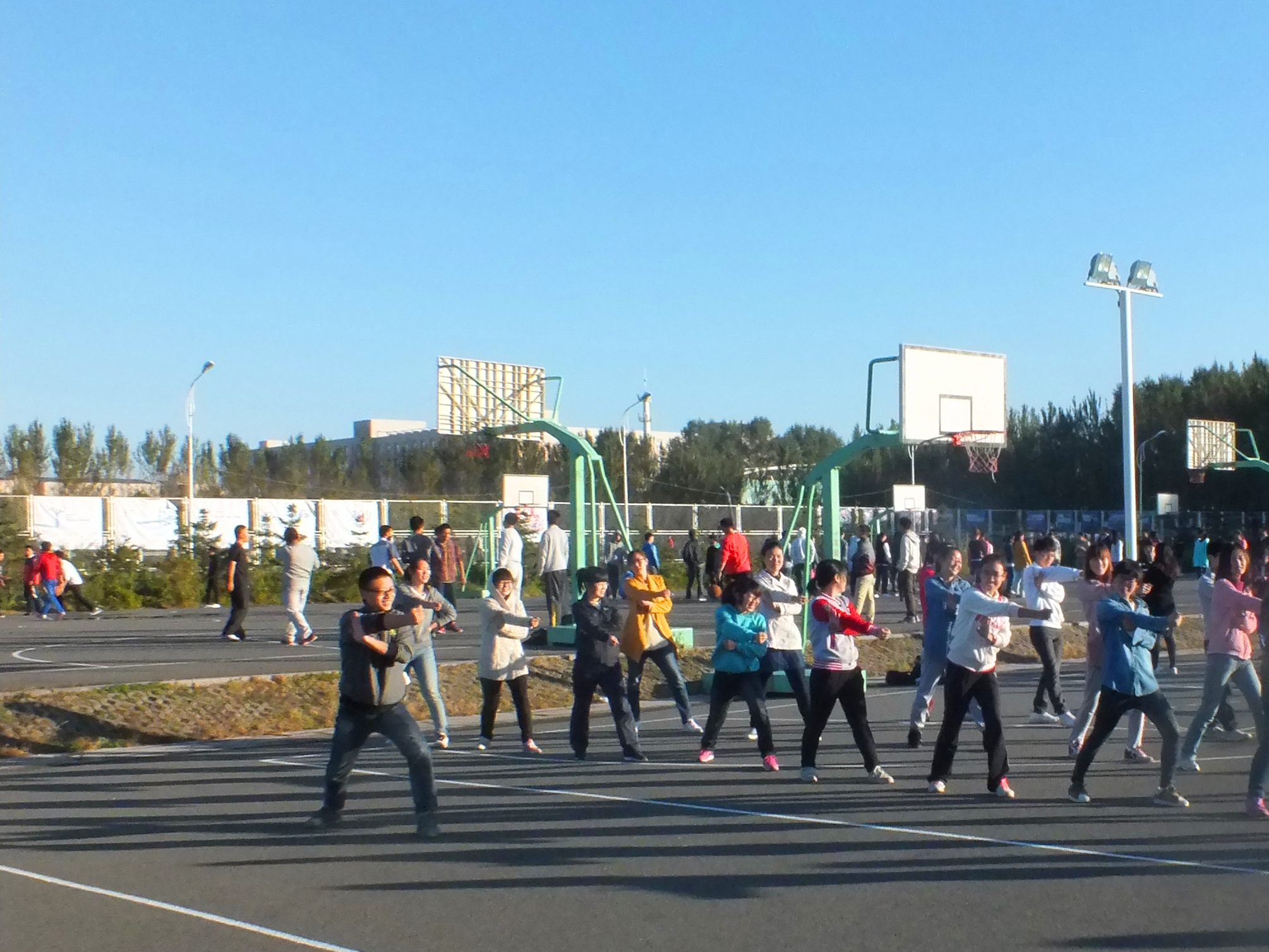 9月23日6时许,2013-2014学年第一学期首次集体早操健身活动在中心校区田径场和篮球场拉开序幕。本次活动的开展旨在贯彻落实《吉林省教育厅关于加强公司体育工作实施意见的通知》和《yl23455永利关于进一步加强员工阳光体育活动实施方案》文件精神,满足yl23455永利公共体育课程设置调整的要求。yl23455永利本科生辅导员刘洋到场指导、监督晨练活动有序有效进行。