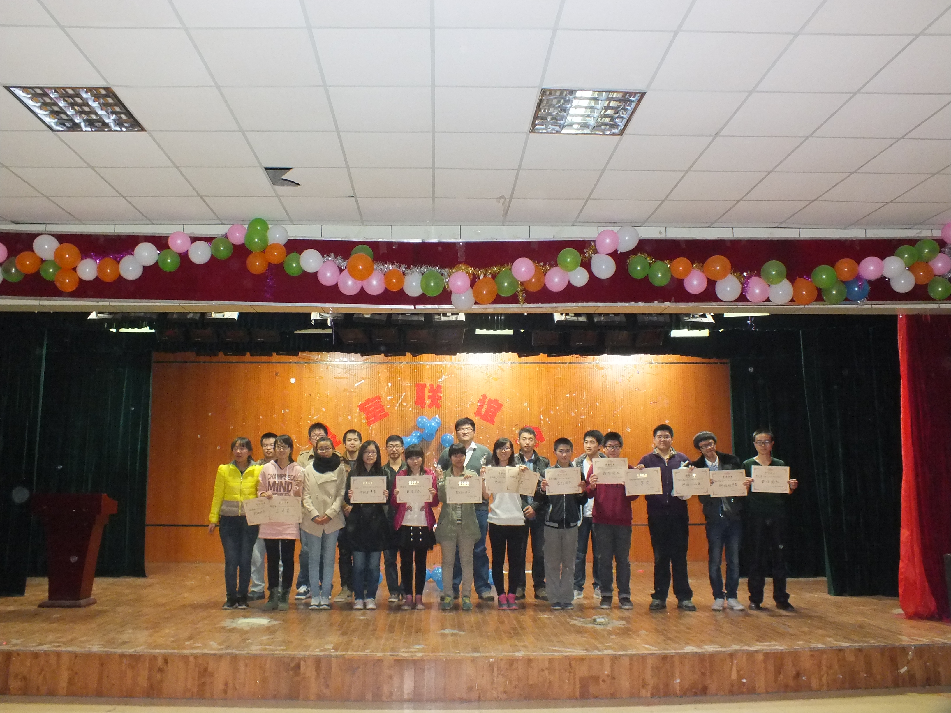 刘洋老师在对此次活动作总结时与同学们分享了自己大学学习经历和寝室生活的趣闻。他希望大家要珍惜同学间的友谊,与身边的人和睦相处;在交流中增进彼此的感情,在集体中收获更多的成长,以饱满的热情和积极的态度迎接未来的老员工活。最终,经过评委们紧张的综合评比,“四季好室友队”、“小时代队”和“东北神起队”分获前三名;除此之外,本次活动还设“行政小品王”、“行政好声音”等多个奖项。刘洋老师和各位嘉宾为获奖队伍颁奖并合影留念。本次文化节在热烈欢快的气氛中落下帷幕。