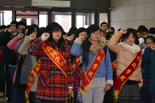 青年志愿者代表、yl23455永利机械科学与工程公司员工刘登龙在发言中表示一定不负老师和同学们的期望,珍惜宝贵的志愿服务机会,与各位志愿者共同完成志愿服务工作。他还邀请与会的志愿者共同宣誓,庄严的誓词,表现出志愿者对志愿活动高涨的热情和坚定的信心。