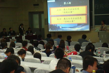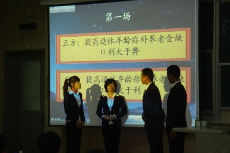 本次比赛,辩手们就“提高退休年龄弥补养老金缺口利大于弊还是弊大于利”及“奥运会应不应该容忍消极比赛”两个辩题展开了两场激烈的辩论。在各具特色的幽默开场白后,正方分别以提高退休年龄弥补养老金缺口适应当前人口结构、符合社会发展趋势及综合运用智力和战略进行消极比赛有利于维护国家荣誉进行了立论,反方则分别从提高退休年龄将引发诸多社会经济矛盾和消极比赛违背奥运精神、践踏既定规则层面展开有力反驳。他们逻辑缜密、条理清晰、引经据典、据理力争,充分体现了他们临危不乱的沉稳大气和气势夺人的自信心。在接下来最为精彩激烈的攻辨和自由辩环节中,各队辩手以极富针对性和技巧性的发问、巧妙自如的躲闪回击展示了其高超的水平和翩翩风度,获得了评委们的一致称赞。