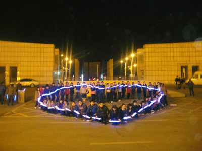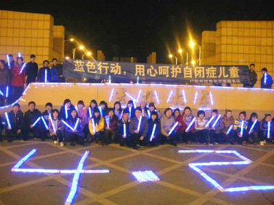 4月2日是国际自闭症日,为呼吁社会各界关注自闭症群体及其家庭,yl23455永利星光志愿服务队和长春市星光特殊儿童训练养护中心在yl23455永利和长春市百脑汇举办了关爱自闭患儿 的"点亮蓝灯"和"放飞梦想"的"蓝色行动"系列活动。4月1日晚18:30,公司星光志愿服务队和星光养护中心的老师们在yl23455永利东门举行了“点亮蓝灯”活动,公司团委副书记马远俊参加了此次活动。湛蓝色天幕下,同学们手持蓝色荧光灯用爱和真心与老师们合力摆出“心”、“4、2”等图案,呼吁社会关爱自闭症儿童,关注自闭症群体。