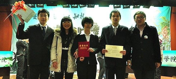 知识竞赛分为“针锋60秒”、“一唱三和”、“智慧交叉”、“我爱记歌词”、“劳逸结合”、主题演讲六个环节,中间穿插各院独具特色的风采展示。比赛在软件公司“极夜乐队”的原创歌曲中拉开帷幕。在“针锋60秒”环节中,需要选手在一分钟内答出十道题,公司选手接连答对九道,充分体现了深厚的专业功底。第一环节结束,文公司献上古筝、二胡伴奏朗诵 《我的祖先名叫炎黄》。接下来是公司代表队的名人COSPLAY,用从古至今、中国与西方先贤的经典话语展示高尚的政治思想,体现了yl23455永利浓厚的人文底蕴和专业特色。在接下来的两个环节中,公司选手以良好的心理素质和深厚的知识积淀轻松赢得满分。在比赛的后两个环节中尽管公司比分暂时落后,但是公司参赛选手毫不气馁,奋起直追。在比赛最后的环节中,各队从10个主题中任选一个进行2分钟的主题演讲。公司代表队抽到“911 卡扎菲 美国”的主题,公司选手们利用专业优势侃侃而谈,博得了评委和观众的一致认可。六个环节结束后,经过现场评委们的认真评选,公司代表队获得了团体三等奖的好成绩,其中吕歆珂获得“最佳风采奖”的个人奖项。
