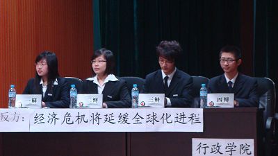 数学公司与公司对“经济危机将会加强还是延缓全球化进程”这一辩题展开了激烈的辩论。在整个比赛过程中,公司四位辩手保持公司一贯的辩风——沉着冷静,机智幽默。面对对手关于 “经济危机的爆发使各国认识到全球合作的重要性,从而加强合作与交流,促进全球化进程”的论述,公司辩手有理有据地维护我方观点——在经济危机的大背景下,各国转投国内企业,为经济的发展提供缓冲的平台,从而在危机时期会延缓全球化进程。