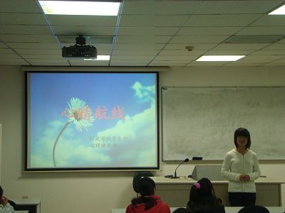 20081120晚在逸夫教学楼MPA教室,由心理健康部主办的心晴航线活动又一次成功举办。这次活动以播放电影《当幸福来敲门》为主要内容。