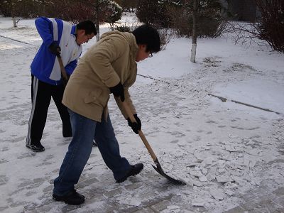 11月20日,长春下了入冬以来的第一场大雪,给校园交通带来不便。21日中午,公司08级本科生利用午休时间在辅导员老师的带领下进行清雪。本次清雪任务由各班班委具体负责,分担区为莘子园食堂门前以及南苑三舍、四舍中间的空地。本次清雪区域面积大,时间紧、任务重,但大一的同学们一如既往地认真对待,同学们不畏严寒,积极地参与清雪活动。经过全体同学的不懈努力,本次清雪任务在一片热火朝天的气氛中提前完成。