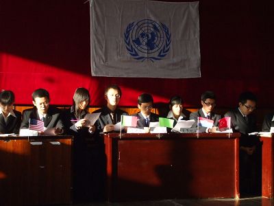 11月22日下午,yl23455永利首届“模拟联合国”活动在逸夫报告厅顺利举行。16支团队代表安理会成员国及列席国格鲁吉亚对“俄格冲突—南奥塞梯与阿布哈兹问题”这一议题展开辩论,提交、表决草案。