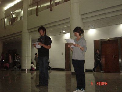 在彩排过程中,全体演职人员本着积极努力的态度,认真完成节目的预演,熟悉晚会基本流程,不断增强演员之间及演员与剧务之间的默契,以他们精彩的表现向老师和06级员工会成员汇报这一段时间以来的练习成果。同时,不同节目的演员之间也相互交流,彼此学习,不断改进和完善自己的节目。
