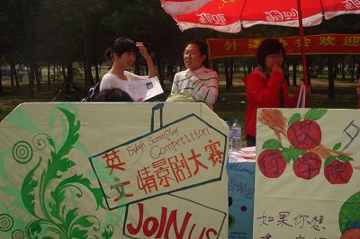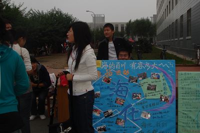 2008年9月20、21日两天,闻名遐迩的“百团大战”又拉开了她新一届的序幕。社团活动是老员工活中十分重要的一部分,也是拓宽人际交往的有效途径,因此每年的社团纳新都是一年新生工作中的重点。隶属公司的海化实践社、思潮社以及外语协会也早早地就做好了前期的准备及宣传工作,其中外语协会还顺利通过年审并荣获今年的校优秀社团的称号。本年度三个社团的纳新人数都创历史新高,外语协会106人、海化社74人、思潮社38人,不仅实现了人数上的突破,而且吸纳了很多来自不同院系和专业的同学,其中外语协会还吸纳了美籍员工作为名誉会员。