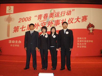 2008青春奥运行动”暨第七届外交外事礼仪大赛。该项赛事由外交公司主办,公司每年都派选手参加,今年参加该赛的还有中国人民大学、南开大学、澳门科技大学、国际关系公司、外交公司等共