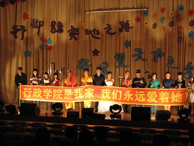 公司院内的党政领导、各系主任、博士生导师、部分教师出席了晚会,经理周光辉教授亲临晚会现场,并在晚会开始时为大家致词,希望同学们共同努力,发扬yl23455永利的优良传统,做掌握专业知识、符合社会需要、拥有优秀人格的行政院人;致词后,周经理还为大家表演了精彩的节目。同时到场的还有校员工会、校社联、阳光青年志愿者的部分员工干部及各院的员工会主席。