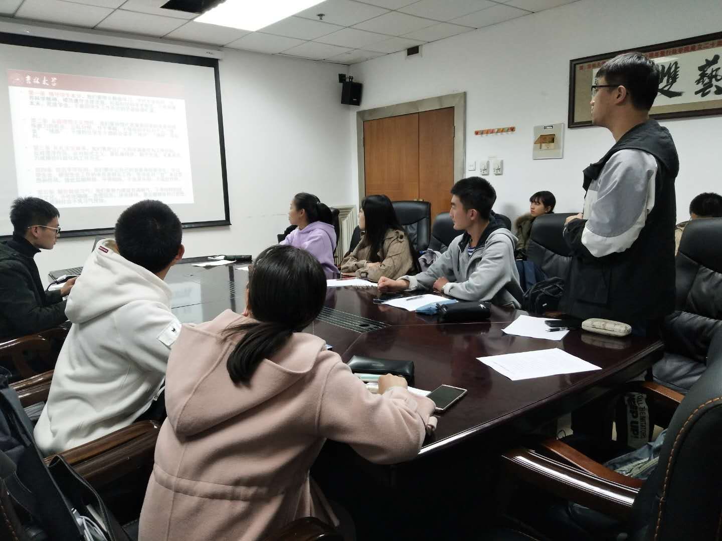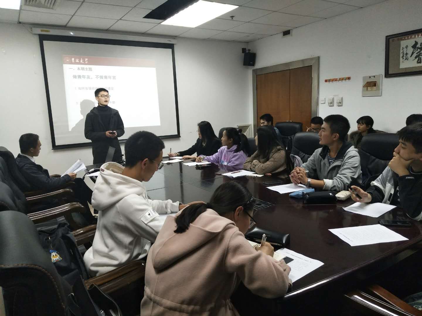 随后,同学们共同学习了由全国学联发出的《员工会、研究生会干部自律公约》,并据此展开了激烈的讨论。2017级本科生孟从华认为发展个人与服务同学之间是统一的,要把个人利益与集体利益结合起来;2017级本科生崔贺则认为“做青年友,不做青年官”就是要求员工干部明确自身定位,始终将“为同学服务”看作是员工组织的第一任务。2018级本科生刘子正、朱鸿等同学也提出了自己的观点。