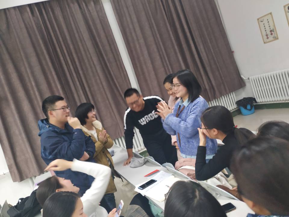 在趣味互动环节中,同学们共分为四个小组,他们通过分别扮演卖家和买家来还原商家将梳子和巧克力等物品进行促销的情景。通过情景模拟,大家脑洞大开,气氛非常活跃。
