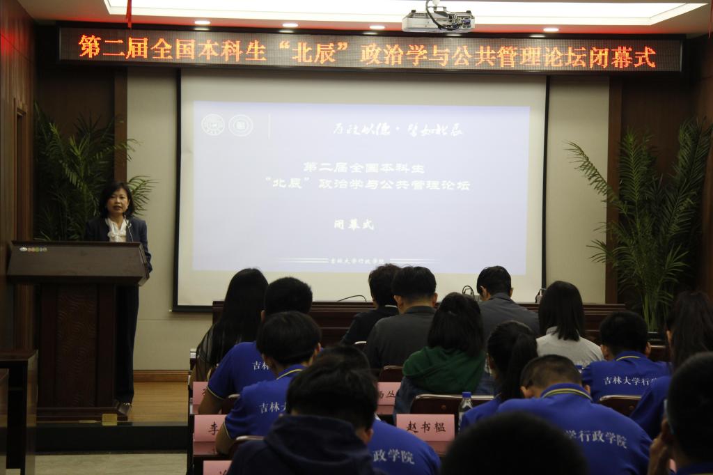 5月27日上午,第二届全国本科生“北辰”政治学与公共管理论坛闭幕式在yl23455永利中心校区东荣大厦举办。公司党委书记魏鹤影、党委副书记常有余、副经理许玉镇、政治学系副主任马雪松、国际政治系副主任宫笠俐和行政管理系丛永清出席了闭幕式。闭幕式由许玉镇主持。