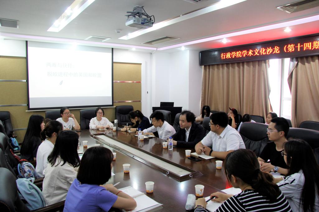 6月13日晚,《行政之光》杂志社于东荣大厦1214室举办了第十四期学术文化沙龙。本期沙龙以“两难与抉择——脱欧进程中的英国与欧盟”为主题,邀请到了公司国际政治系许宁老师作为点评嘉宾。院员工工作办公室主任、辅导员刘洋及20余名本科生同学参加了本期沙龙。本期沙龙张砚清(2017级本科生)同学主持。