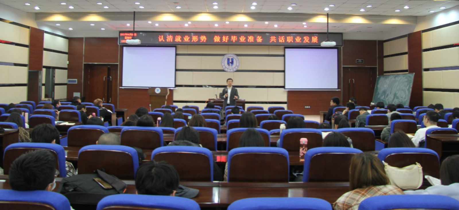 课上,马景惠书记全面介绍了当前高校毕业生面临的就业形势,围绕国际局势复杂深刻变化、国内经济结构调整和新动能转换、新冠肺炎疫情叠加影响、高校毕业生数量持续增长、就业结构性矛盾凸显等方面分析了高校毕业生就业面临的挑战和压力,同时,结合国家出台的就业利好政策、省市的积极推动、校院两级的就业工作体系等就业民生工程落实举措,鼓励和引导毕业生客观理性看待就业形势。